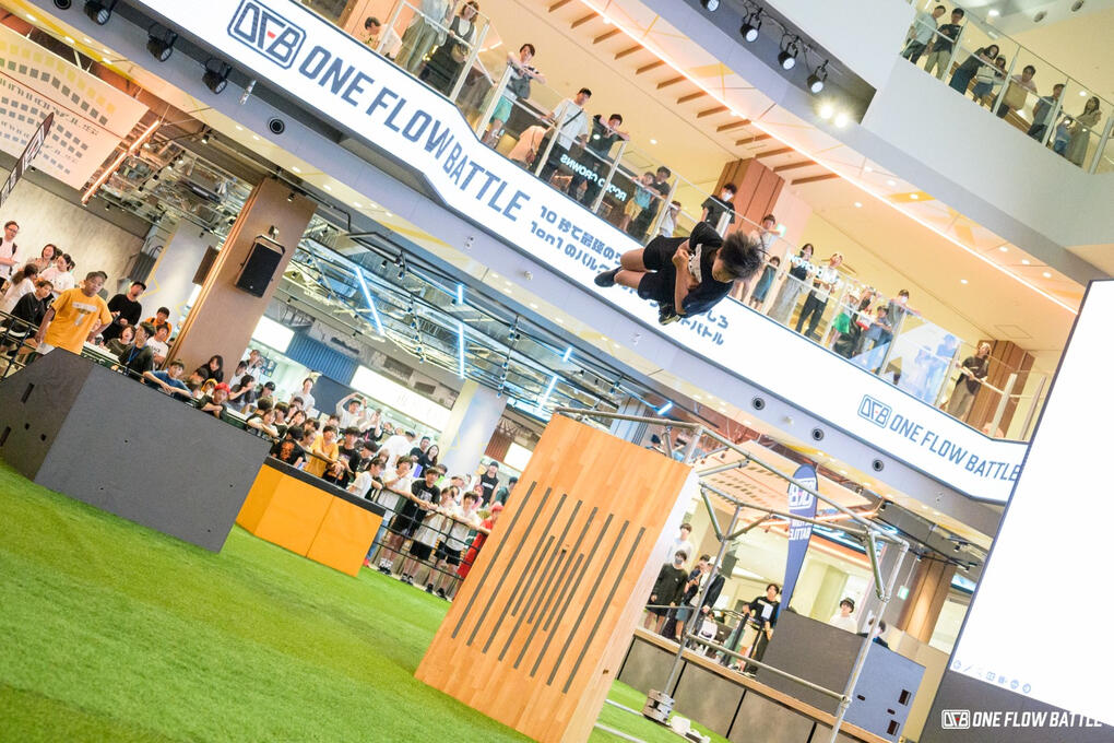 One Flow Battle is a series of 1 vs 1 parkour flow battles in the style of breakdance or MC head-to-head battles. The athletes have 10 seconds to do their best movements and are compared against each other directly in that battle only. It is a tournament format where the winner advances to the next round, and the loser is eliminated from the contest.